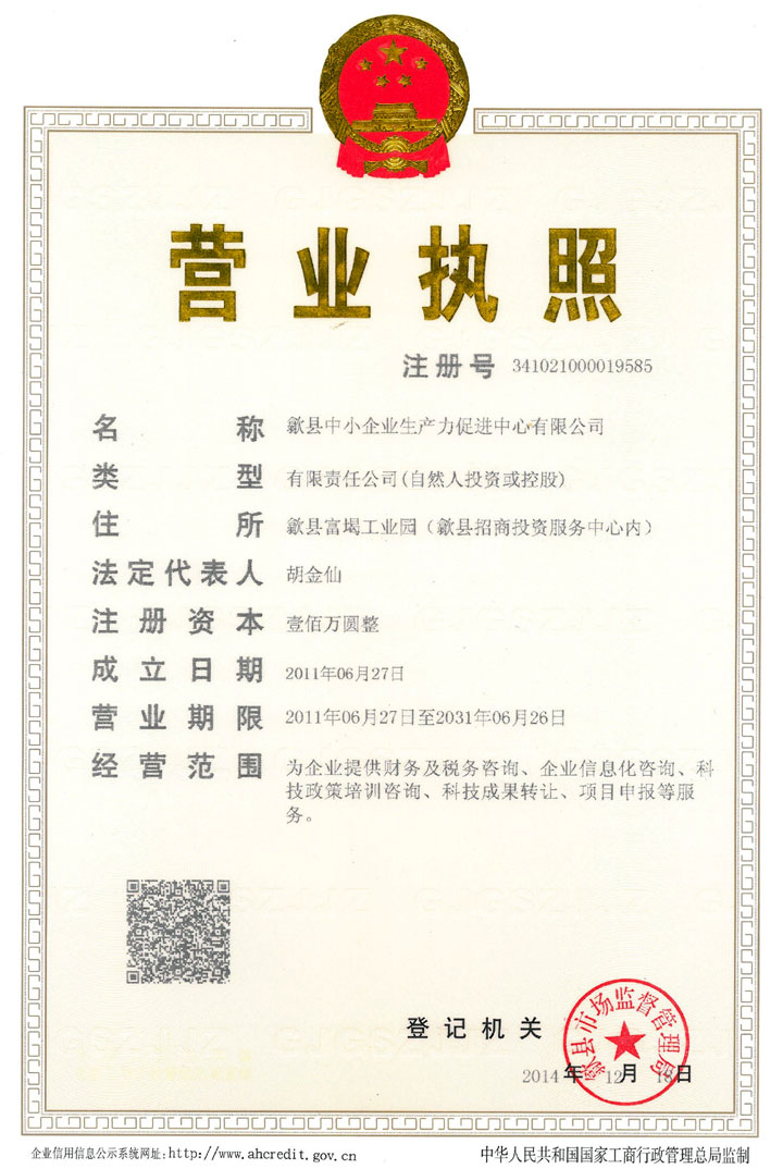 歙縣中小企業(yè)生產(chǎn)力促進中心有限公司