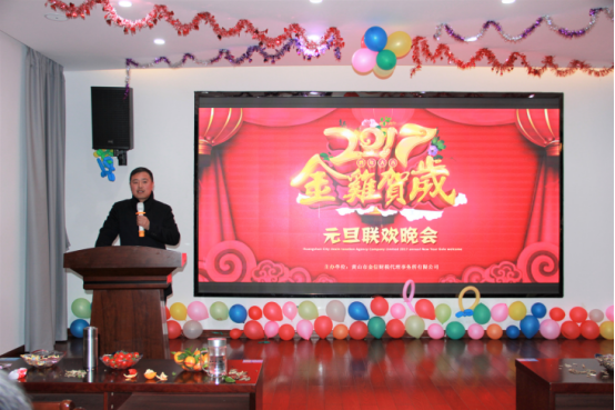 2016年12月30日晚,金信財稅元旦聯歡晚會在歙縣招商中心大樓一樓眾創空間舉行,晚會包括晚宴及文藝演出兩部分,為了表示員工家屬這一年來對員工工作的支持,除了公司員工,還特地邀請了員工家屬參加聯歡晚會。