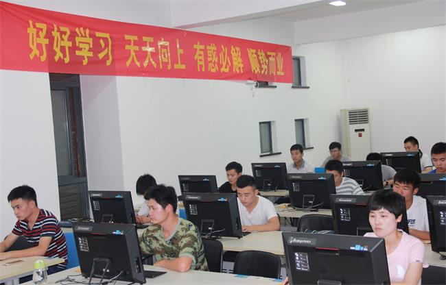 7月4日晚,歙縣青創(chuàng)職業(yè)學(xué)校電教室內(nèi)燈光明亮,參加全縣退役士兵職業(yè)技能培訓(xùn)班的小伙子們精神抖擻、興致盎然,“好好學(xué)習(xí) 天天向上 有惑必解 順勢(shì)而業(yè)”的大紅標(biāo)語(yǔ)也格外醒目。學(xué)員們?cè)诎滋炖碚摻虒W(xué)的基礎(chǔ)上,利用晚上進(jìn)行上機(jī)實(shí)際操作,鞏固提升所學(xué)知識(shí),相得益彰。看,他們學(xué)得多認(rèn)真啊!
