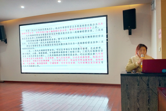 徐佳敏是機動車維修經營備案專業辦理人員,有著豐富的辦理經驗,平日工作認真負責。此次分享她主要圍繞“機動車維修經營備案”這一專項知識點,從機動車維修經營的許可條件,以及辦理許可所需要的申請材料進行詳細講解,經過徐佳敏的詳細介紹,使得參與分享人員對機動車維修經營許可證的備案辦理有了更全面、深入的了解,為今后辦理此類證件提供有效幫助,方便企業在證件辦理前期做好工作準備,提升工作效率。