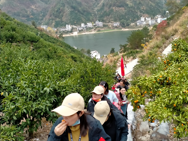 隨后團隊返回我縣新溪口,品嘗農(nóng)家樂,沿著登山步道欣賞新安江畔的桔園秋色,品嘗最新鮮的蜜桔酸甜味道。看到碩果累累的圖景,也讓我們不禁想到桔農(nóng)養(yǎng)護、灌溉的辛苦,艱辛的付出才換來如今的收獲。