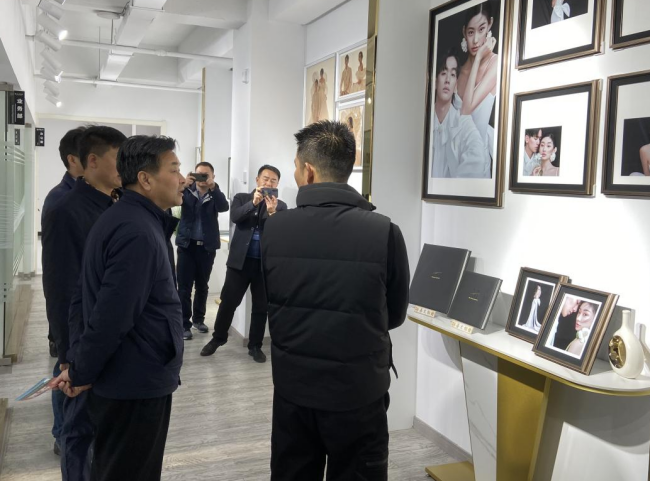 隨后,領(lǐng)導(dǎo)一行人來到入駐基地發(fā)展的軍創(chuàng)企業(yè)善文相冊公司,該公司總經(jīng)理吳兆文熱情接待,他首先介紹了自己的創(chuàng)業(yè)歷程和企業(yè)產(chǎn)品,隨后帶領(lǐng)大家實地參觀生產(chǎn)流水線。作為一名退役軍人,吳兆文始終保持了軍人的嚴(yán)謹(jǐn)和部隊作風(fēng),退役后成立了善文相冊公司,形成了相片、視頻從拍攝到制作,再到包裝、銷售的業(yè)務(wù)模型。