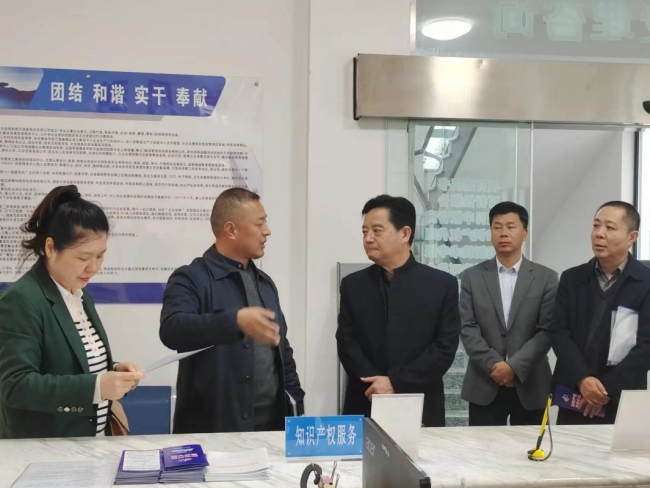 11月8日,安徽省市場監督管理局知識產權公共服務處處長孫杰、省市場監管局四級調研員袁立新在黃山市市場監管局黨組成員、副局長張妮,歙縣市場監督管理局局長江志偉等陪同下到我中心就企業知識產權工作進行實地調研。