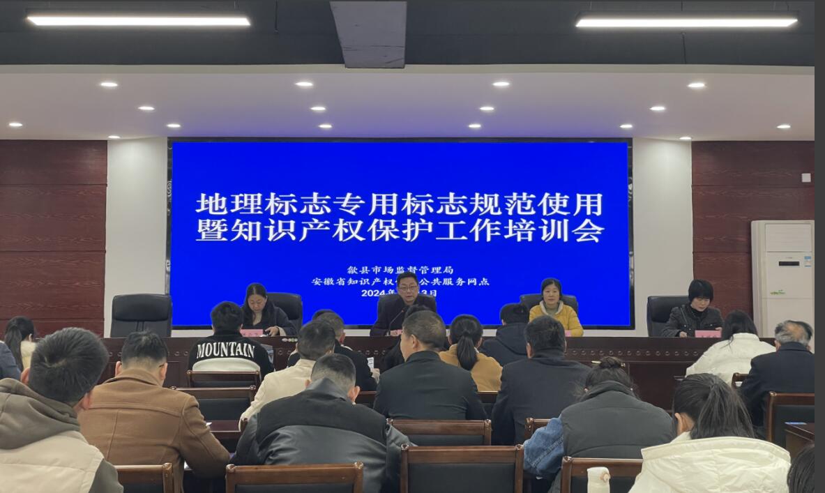 3月13日下午,由歙縣市場(chǎng)監(jiān)督管理局主辦的“地理標(biāo)志專用標(biāo)志規(guī)范使用暨知識(shí)產(chǎn)權(quán)保護(hù)工作培訓(xùn)會(huì)”在黃山市首家知識(shí)產(chǎn)權(quán)“一站式”服務(wù)工作站——安徽香寧眾創(chuàng)科技服務(wù)有限公司召開。縣市場(chǎng)監(jiān)督管理局黨組成員丁大勇出席會(huì)議并講話,各市場(chǎng)監(jiān)管所專員、歙縣地理標(biāo)志專用標(biāo)志使用企業(yè)負(fù)責(zé)人、相關(guān)協(xié)會(huì)負(fù)責(zé)人,縣局知識(shí)產(chǎn)權(quán)股工作人員等70余人參加了會(huì)議。會(huì)議由縣市場(chǎng)監(jiān)管局知識(shí)產(chǎn)權(quán)股股長(zhǎng)洪云飛主持。