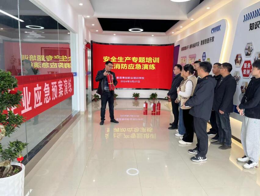 2024年3月27日,歙縣青創職業培訓學校在校內組織了一場關于安全消防知識的專題培訓,全體學校職工均參與了此次活動。