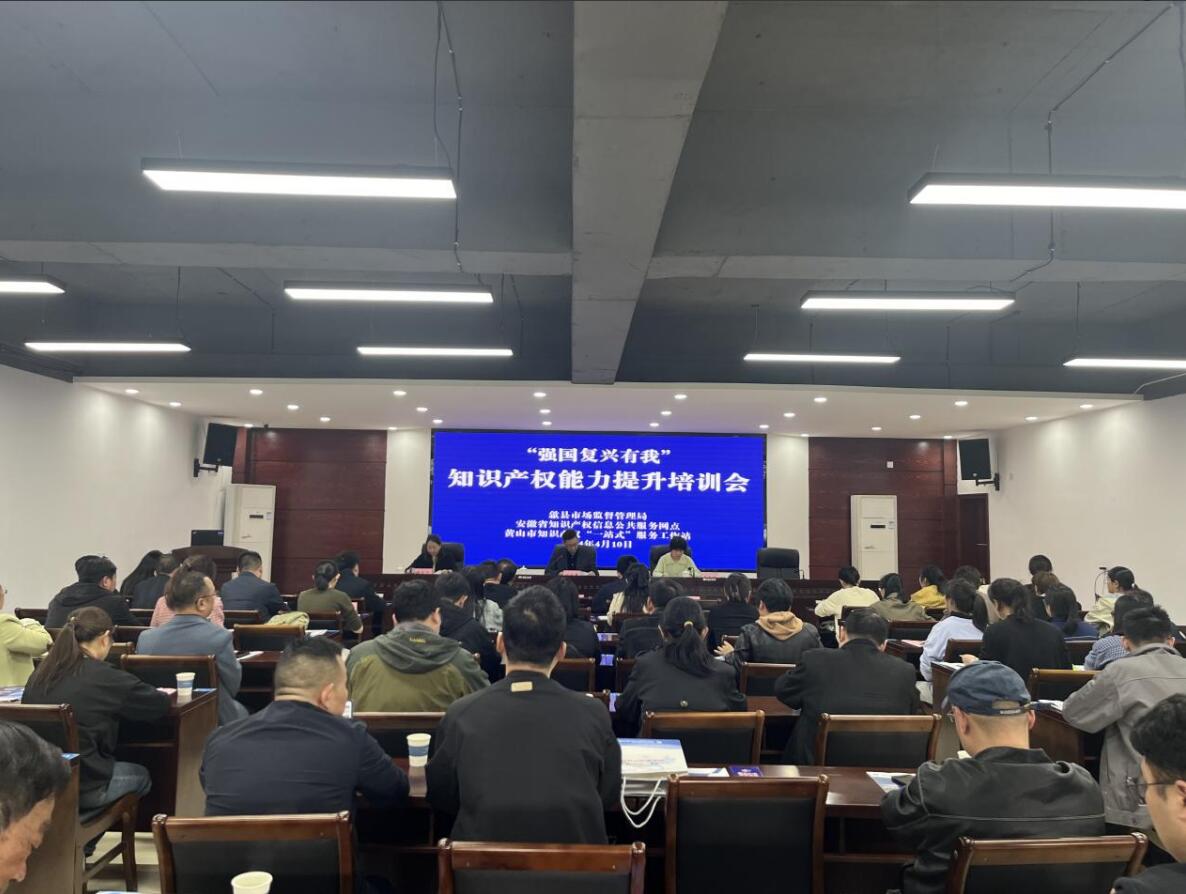 為提升我縣企業創新能力,強化知識產權保護與運用,增強企業核心競爭力,強化創新驅動,增強經濟發展后勁,助推全縣經濟高質量發展。4月10日,歙縣市場監管局和我網點聯合舉辦以“強國復興有我”為主題的知識產權能力提升培訓會,全縣11個市場監管所和50余家企業知識產權專員到會參會,縣市場監管局黨組成員丁大勇出席會議并講話。