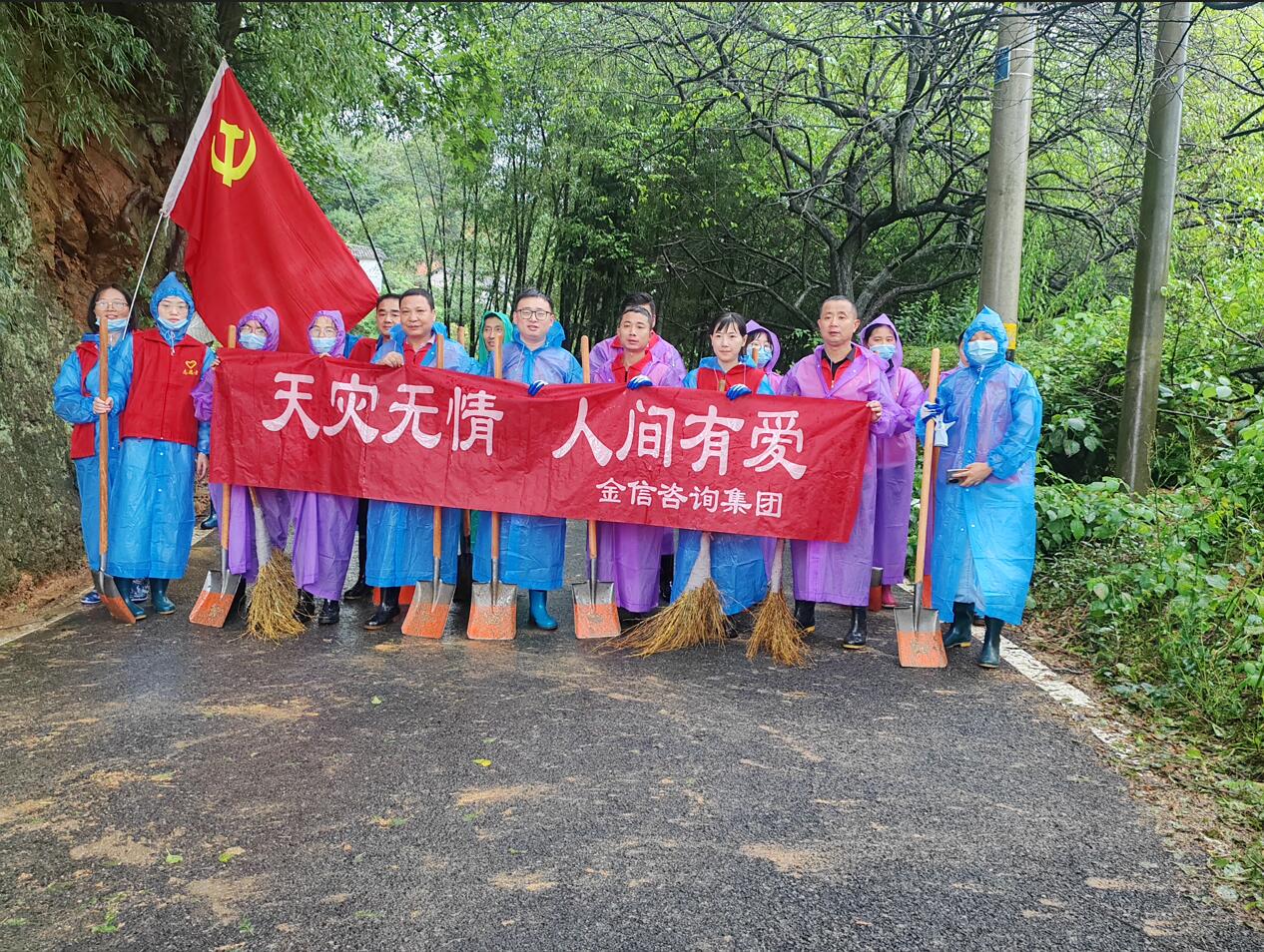 2024年7月1日,歙縣又遭受了強降雨,河水暴漲。金信財稅黨支部再次組織了集體救災工作,15人金信職工深入支援富堨鎮(zhèn)仁里村,協助進行災后恢復重建工作。大家冒雨掄起鐵鍬清淤泥、鏟垃圾,豆大的汗水與雨水、泥水相融,以“連續(xù)作戰(zhàn),不懼辛苦”的精神向黨踐行了“不忘初心,牢記使命”,以實際行動迎接中國共產黨成立103周年!