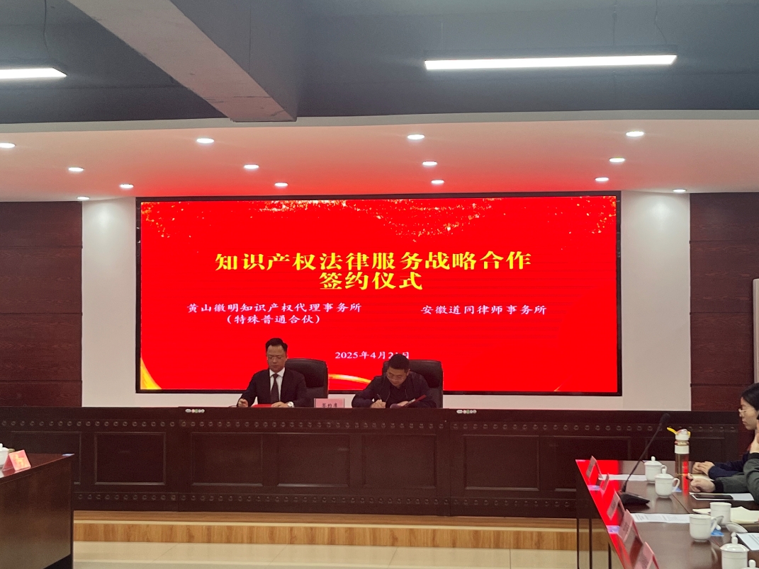 當日,黃山本土專利代理機構組織召開“共話未來趨勢 共謀發展機遇”交流座談會,金信集團所屬的專利代理機構徽明事務所所長胡海鋒與道同律師事務所管委會主任洪徽各自介紹本土知識產權業務情況和未來發展規劃,并現場簽訂戰略合作協議。