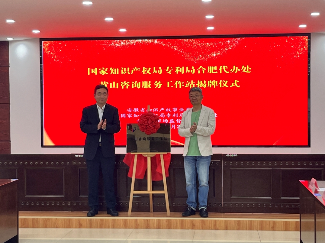 4月21日,國家知識產權局專利局合肥代辦處黃山咨詢服務工作站揭牌儀式在金信咨詢(黃山)集團有限公司舉行。黃山市市場監督管理局(知識產權局)黨組成員、副局長黃劍主持會議,省知識產權事業發展中心副主任丁濤,國家知識產權局專利局合肥代辦處負責人孫雄軍出席揭牌儀式。